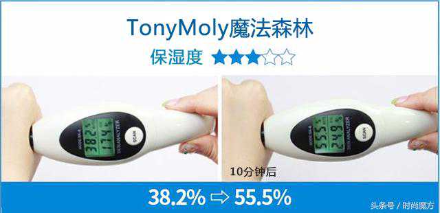 测试结果显示,TonyMoly魔法森林使用卸妆水洁面后肌肤水分增加了17.3%。