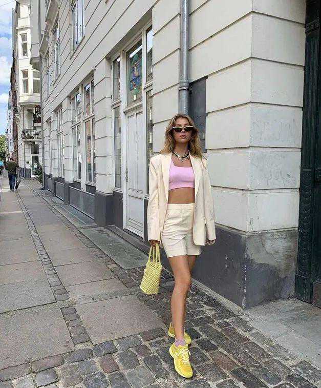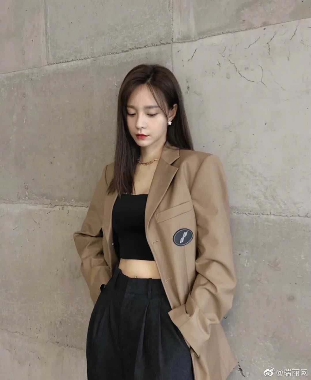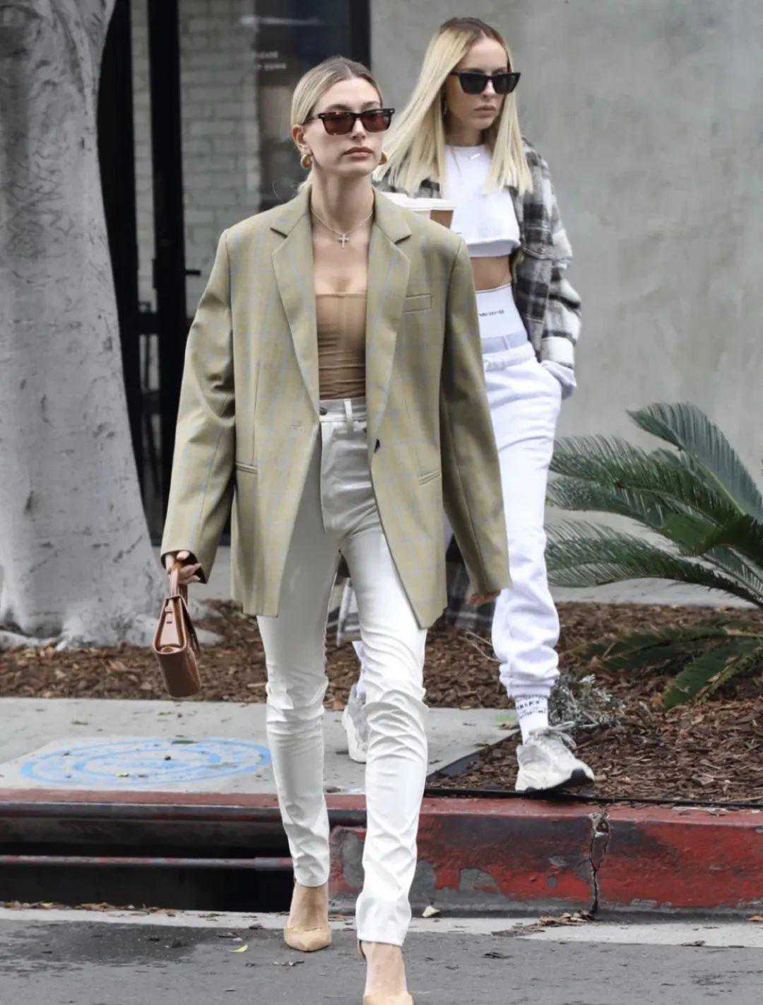 最近超火的西装外套内搭运动Bra的穿搭,