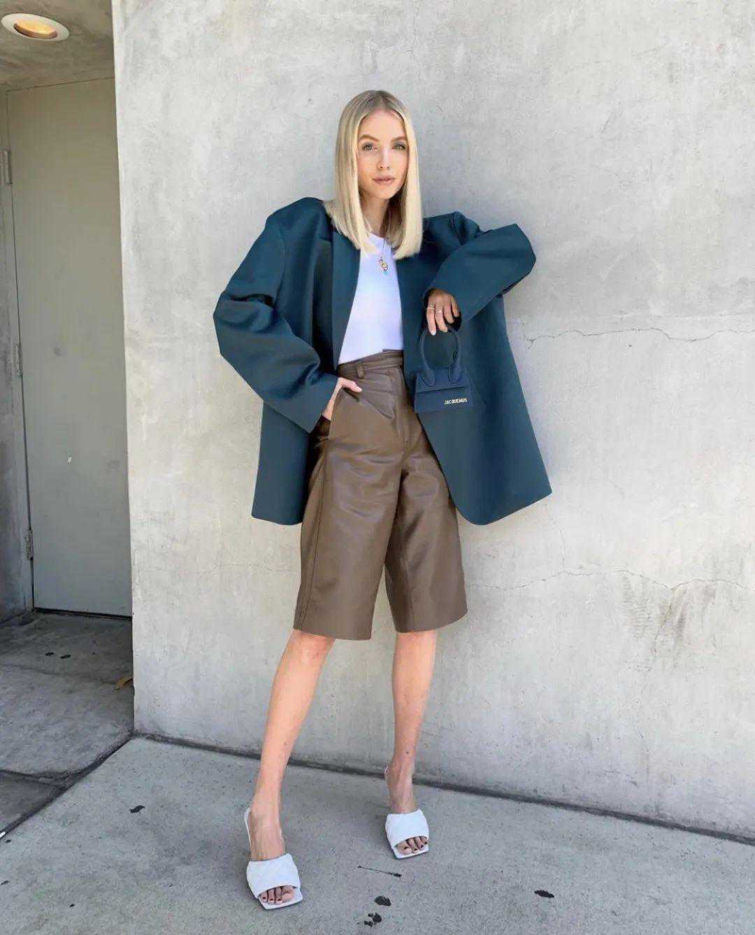 Oversize风西装无论是搭配皮质百慕大短裤,