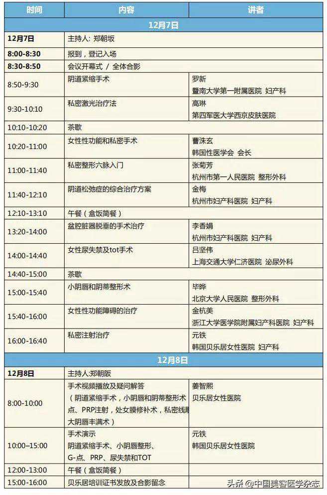 大咖授课:邀请了国内外知名女性生殖整复领域的专家,包括韩国贝乐居女性医院院长元铁教授,杭州市妇产科医院李香娟教授,浙江大学医学院附属妇产科医院金杭美教授,广州暨南大学附属第一医院罗新教授等专家分享经验!