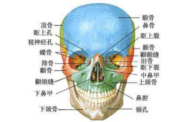 颧骨由四边形的骨体组成,有三个面、四个骨突、五个缘。