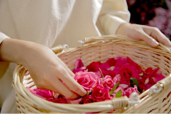 据了解,在云南当地流传着一个彝族美容古方——“女儿蜜”。每年初春清晨,彝族少女们都会穿过雾霭的山谷,在山间寻找半开的野生小玫瑰。她们遵循采摘传统,用虎口测量花苞,只采摘不超过虎口大小的半开小玫瑰,连同花萼一起装满罗裙。晒干后的花瓣,被浸润在当地野生蜂蜜中,自然发酵28天,最终酿得独一无二的“女儿蜜”。当地彝族女性内服外敷,肌肤饱满、细腻、红润,仿佛时间冻结。