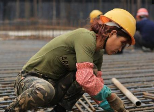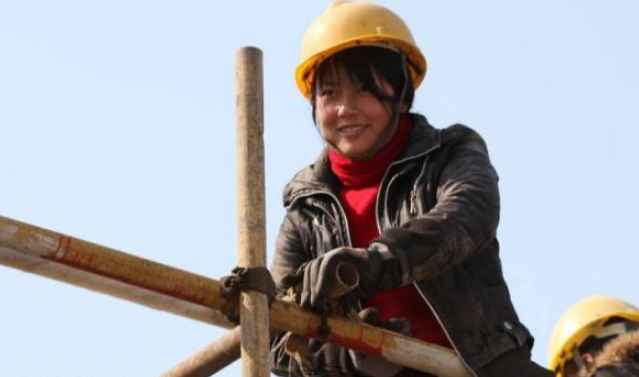 图为一名女工在建筑工地上干活。谁说女子不如男!为了能让家里多一些收入,她们跟随丈夫走南闯北,或是独自一人外出打拼,从不因为自己是女人而逃避赚钱养家的责任。最后,为这些建筑女工们点赞!