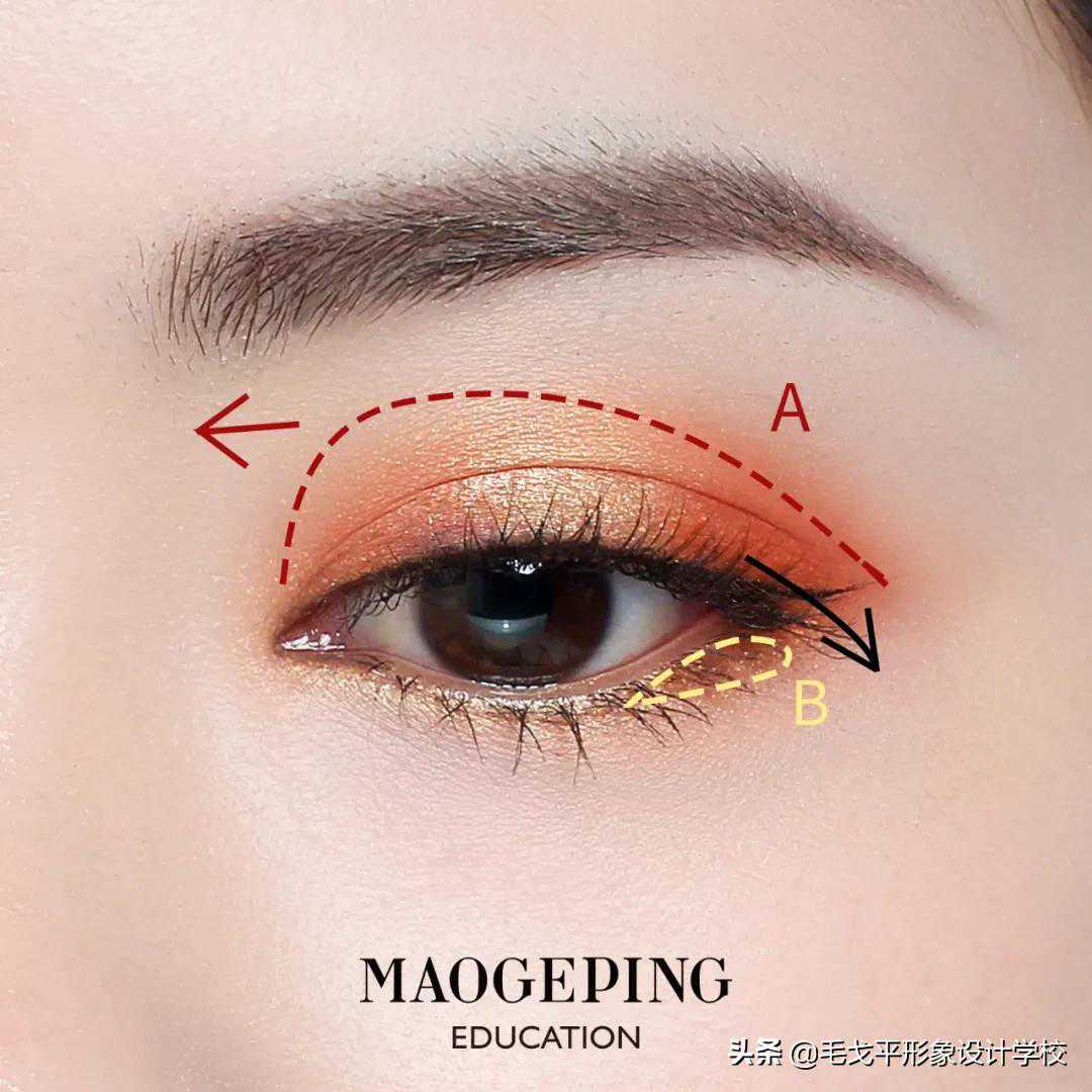 下眼尾(B)用深色眼影填满,中和眼尾上翘的感觉~