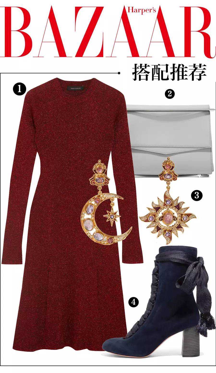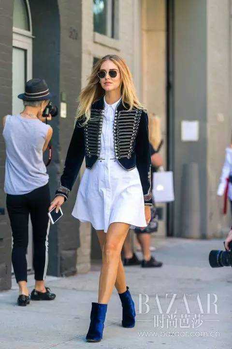 短夹克搭配衬衫裙,丝绒外套与及踝靴材质上的呼应,才能体现出好的穿衣品位。