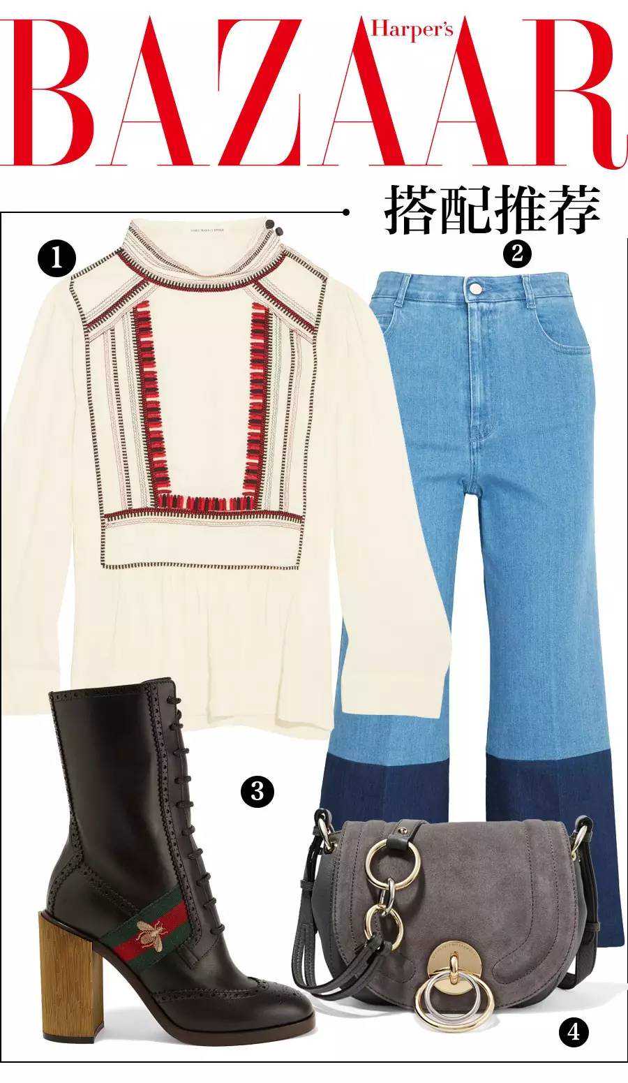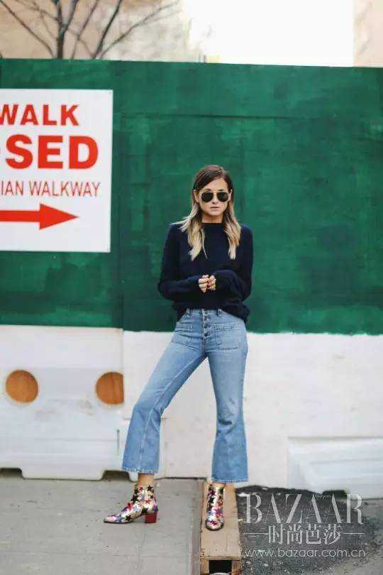 或者用微喇牛仔裤搭配及踝靴,会有想不到的嬉皮风惊喜哦~