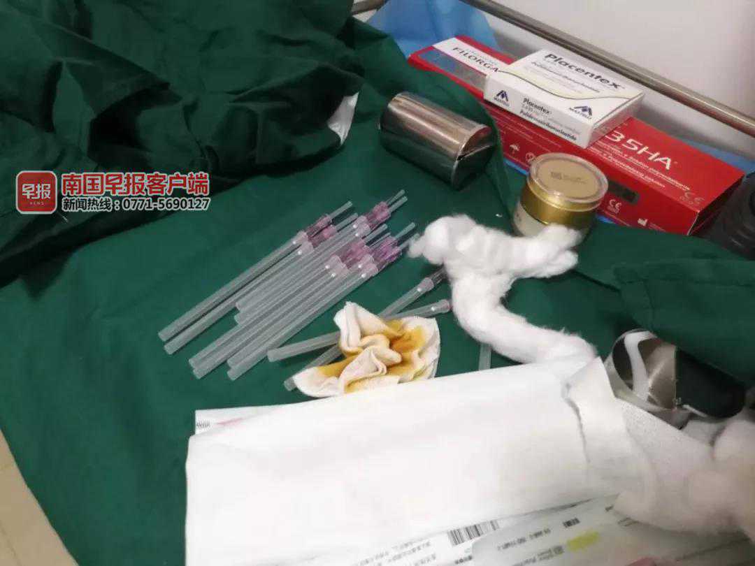 据进一步了解,覃某某是这家名为“冰鑫形象设计”非法医疗美容点的负责人,也是这里的“主刀医生”。据她介绍,她原来在附近小区开了一家美容机构,主要从事美容、美甲、激光脱毛等项目,2018年底转移到住宅小区后,才开展给顾客打玻尿酸、肉毒素等医疗美容项目,来的都以熟客为主。“本来昨天就想离开南宁,最后没走成,没想到今天就被逮住了”。