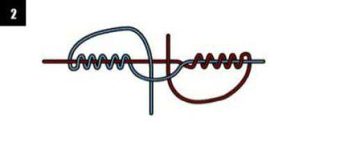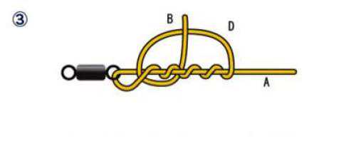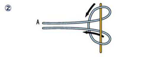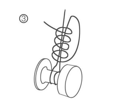 母线B重复子线A的线结,先依着A线折返形成小线圈,再缠绕3-4圈左右折返从小线圈中穿出