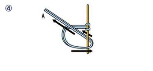 如图4所示方向,拉紧成线结,线结活动时松紧适合
