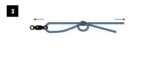 如图3所示方向缓慢拉紧线结。(为了使线结方便靠拢环孔,这个时候不要把线结打死)