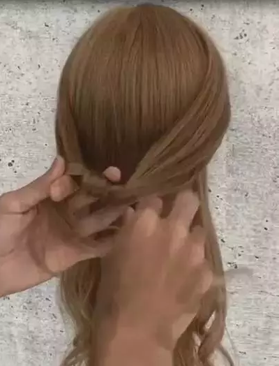 STEP2:两根发束在中间交叉。