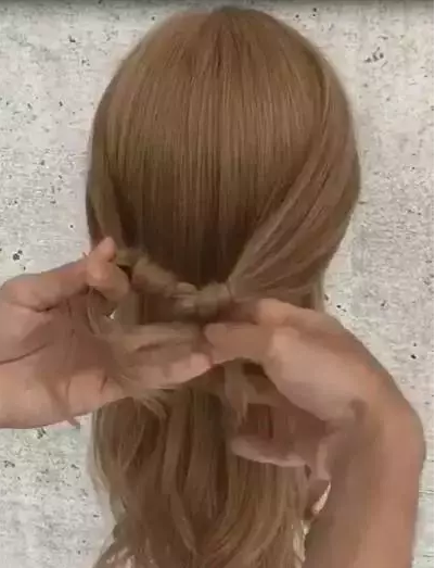 STEP1:从左右两侧各取出一束头发向中间靠拢。