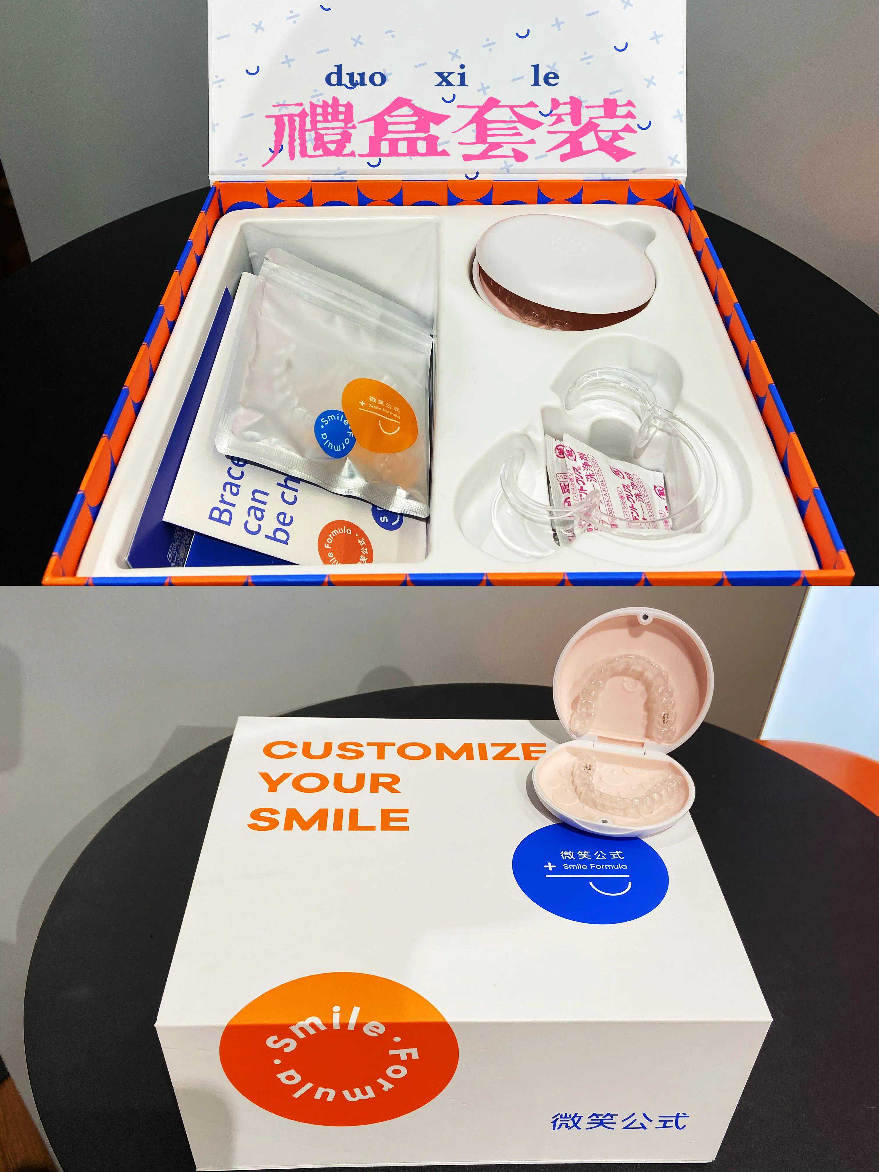寄送到家的礼盒包装很精美,有隐形牙套、牙套盒、清洁片、咬胶、开口器等配套用品,携带方便哦。还另外送了美牙笔和清洁泡沫!