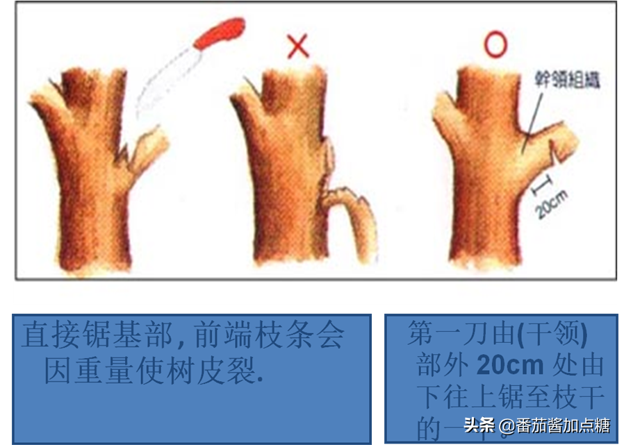 b、只对一级分枝进行了修剪,没有再修剪二级、三级枝,导致树冠偏重,易弯折。从而来年又形成新的下垂枝条,周而复始,永远形不成正确的树冠。