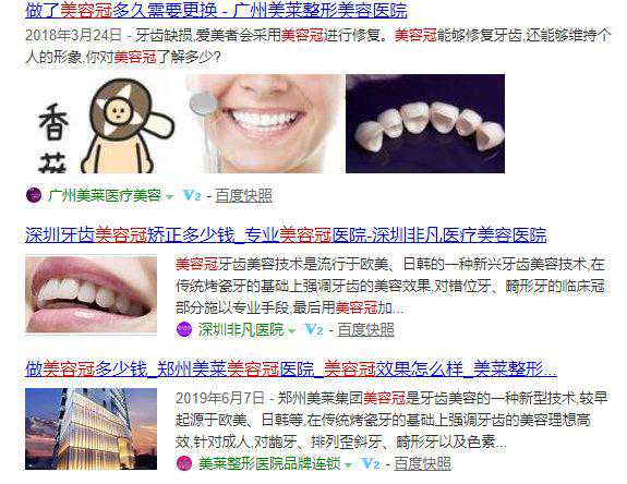 说了这么多,我们回到正题,整篇新闻都在说“美容冠”,这“美容冠”到底是什么?对于正规的口腔医学来说,是没有“美容冠”这个说法的,这些是很早一些口腔机构杜撰出来的营销理念而已,以“7天快速矫正为噱头”我幌子,吸引那些对牙齿矫正不了解,又想快速改善牙齿颜色和把牙齿排列整齐的患者。搜索百度,现在还能搜索到“美容冠”的介绍。