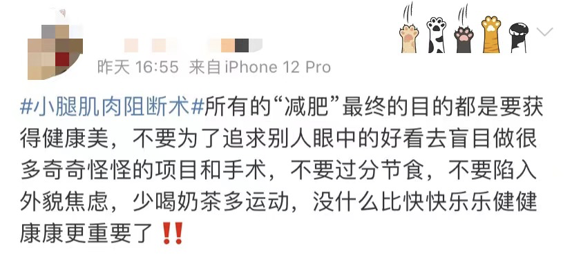 5月18日,有网友做了“小腿肌肉阻断术”,并发在社交平台进行分享。该帖称,这项手术可以让肌肉慢慢萎缩,从而达到永久瘦小腿的效果。