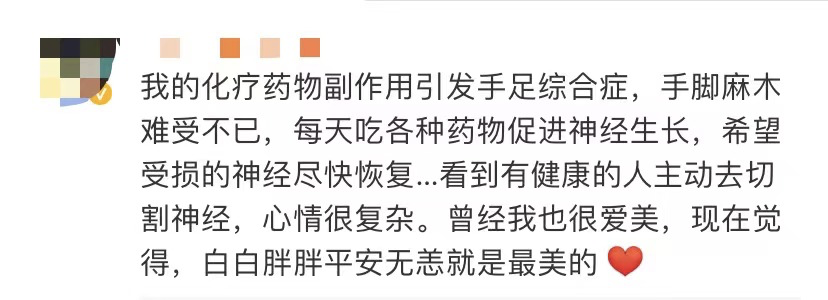 还有网友分享出亲身经历并呼吁:白白胖胖、平安无恙就是最美的。