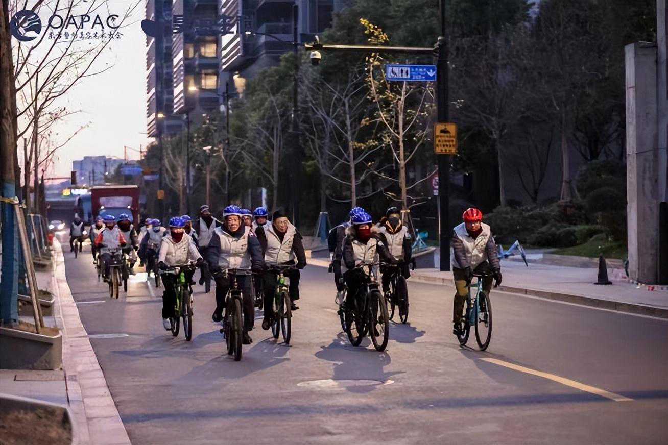 凌晨4点,OAPAC会务组小伙伴便开始为开幕式-外滩骑行忙碌了起来。和50位嘉宾们汇合,一起热身后,便从现代的徐汇滨江出发,在寒风刺骨低至零下4℃的黑夜中,一路风驰电掣,穿越黎明,直至百年外滩,共同迎接上海黄浦江上蓬勃而出的朝阳。我们一路欢歌,互相鼓励,没有一个人掉队,骑行带给我们快乐,骑行带给我们力量,骑行让我们凝聚在一起,更坚定地相信未来!