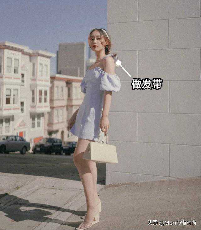 选择做发箍的发带一定要选择细长型的,丝巾的颜色和服装的颜色撞色、局部呼应都是很不错的搭配方式。