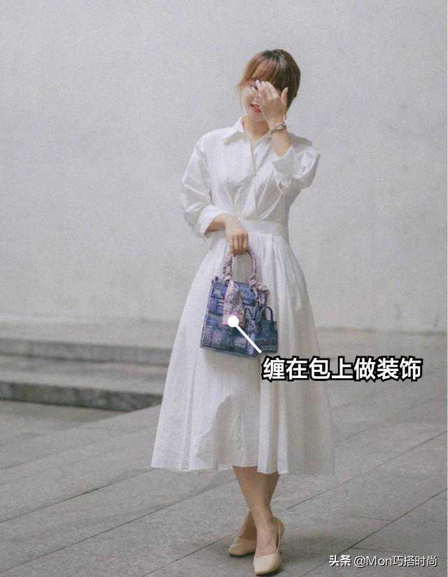 丝巾做腰带和腰带起到的作用是相似的,都可以提高腰线修饰身材比例,但是丝巾比腰带选择性更多,调节性更强。