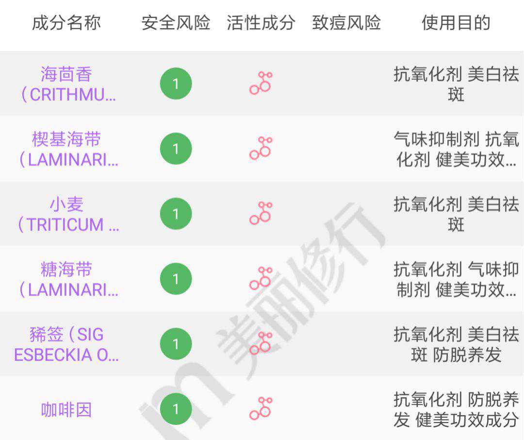咖啡因、糖海带、生育酚乙酸酯、野大豆等。