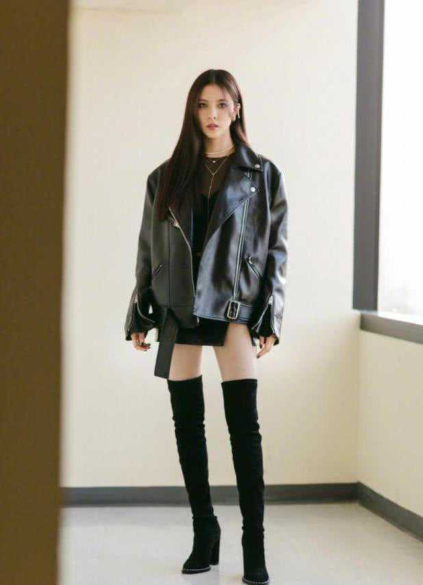 皮质与黑色简直是绝配,比如黑色的皮衣,搭配长筒靴,轻松的打造出帅气酷拽的感觉。