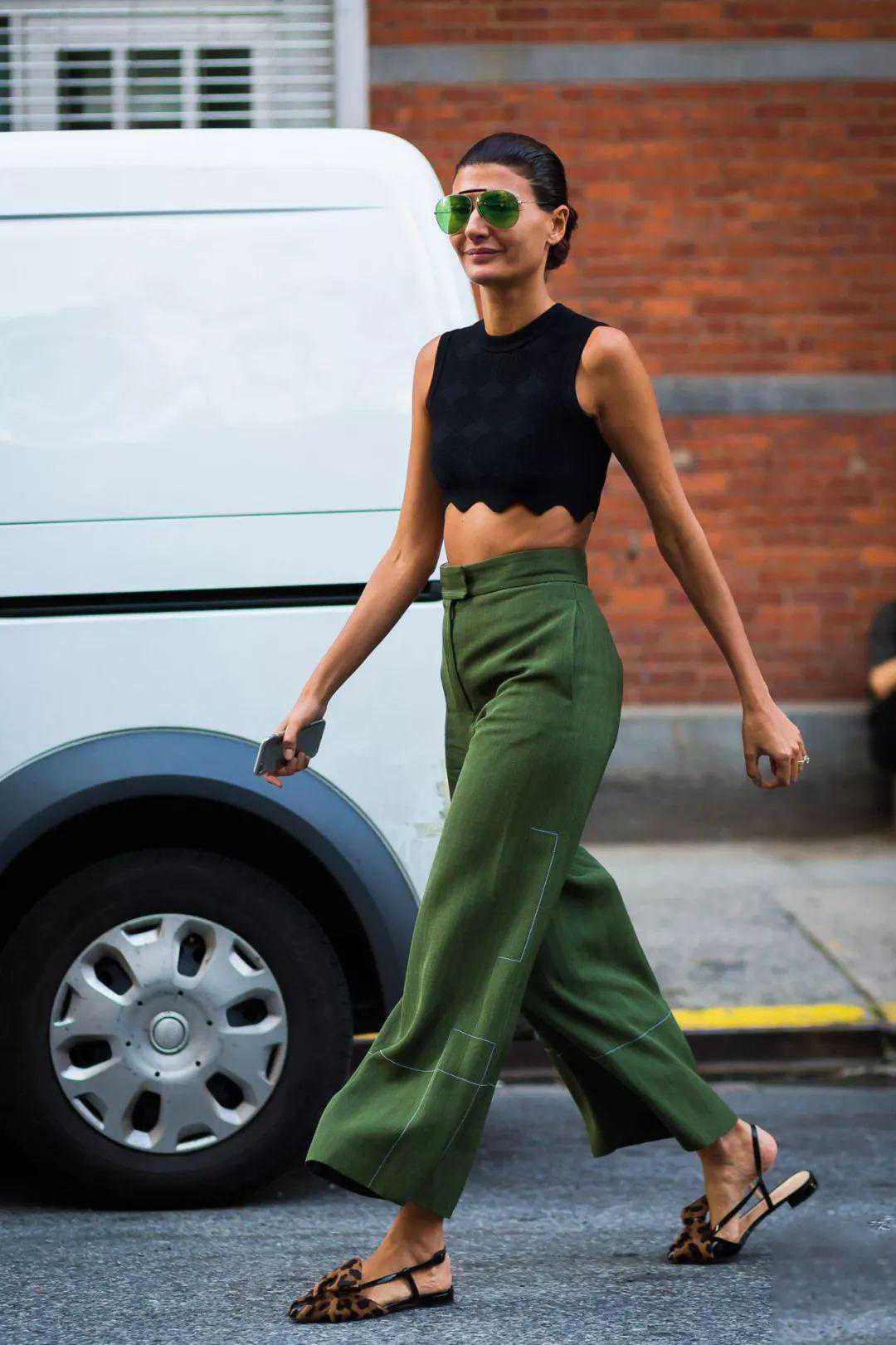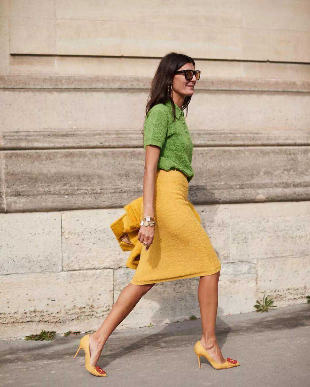 黄色跟绿色这俩对比色放在一起穿的难度不小,但是换上带点黄调的绿色后会最大化减弱视觉冲击,看上去是不是还挺和谐的?