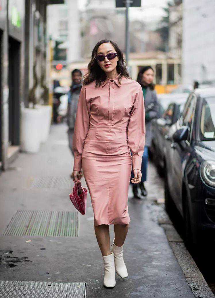 高段位的时髦精还懂一点:利用深浅不同的粉色来制造层次感。为了显白,请一定记得,不要把饱和度高的粉色放在上半身。