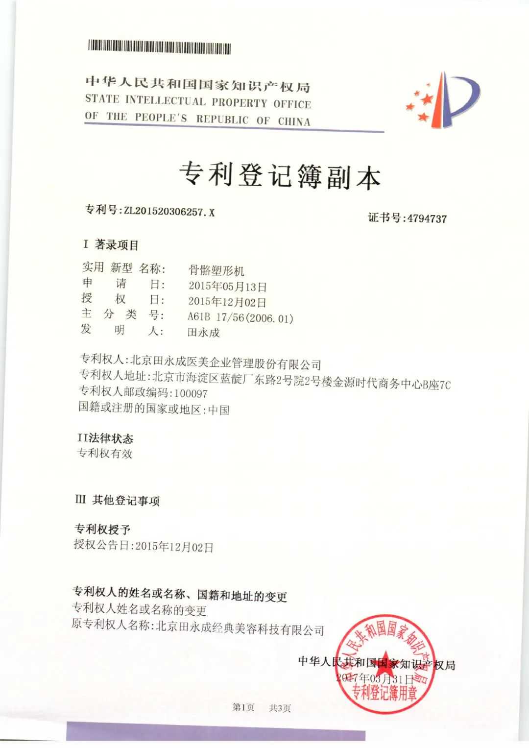为了更好地进行技术和管理创新,永成医美的视角不局限于国内,为了学习世界最新的潮流趋势和技术,田派专家团队的足迹遍布了韩国、美国、欧洲等多个国家和地区。研发了“骨骼塑形机、整形手术用分离器”等24项医美专利和60余项独有术式。先后荣获“首届宁夏慈善特别贡献奖”“2016年度诚信价值品牌奖”等多项荣誉称号。2017年,永成医美在新三板挂牌,成为中国高端医美第一股。