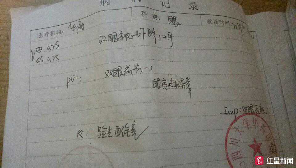 1月9日,王芸在华西医院进行了检查,双眼视力均为0.25。她称,美容前自己的左眼视力为1.2,右眼1.1。