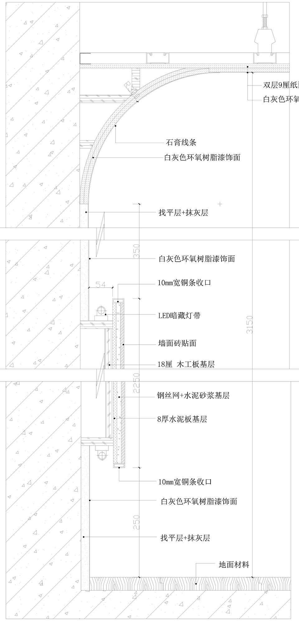 主材:水磨石、GRC、实木复合地板、白色订制涂料