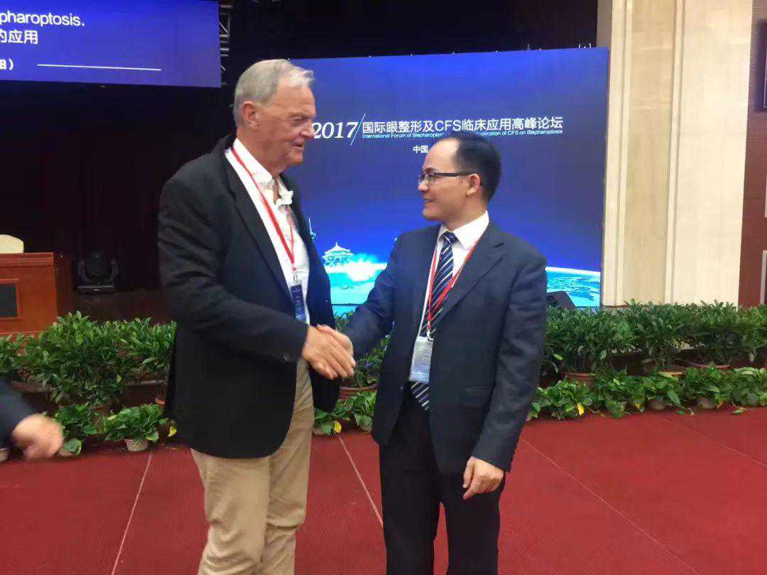 (2)2017年5月21号受邀国际眼整形及CFS临床大会做演讲:重度上睑下垂修复,并与CFS术式创始人、瑞典哥特堡大学整形外科HansHolmstrom教授等多位国际眼整形教授同台献技