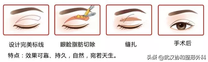 全切法就是在上眼皮的适当位置切开皮肤,去除部分眼轮匝肌或眶隔脂肪,并将眼皮皮肤与睑板或上睑提肌腱缝合在一起。