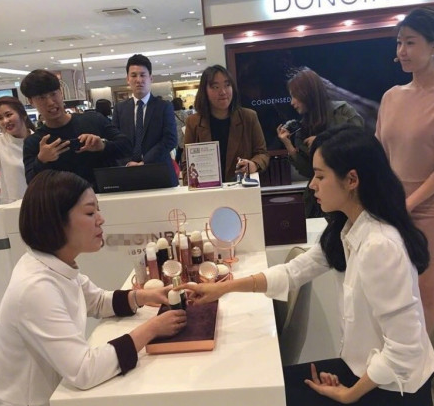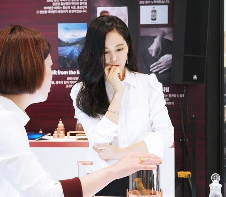 在活动曝光的照片中看,韩佳人身穿简洁白色衬衫,下身穿搭黑裤子,非常简约干练。与工作人员交流时表情娴静,一袭黑发披肩更显温柔。和《魔女幼熙》时候相比,韩佳人容貌真是数年如一日,简直就是整容界的模版。