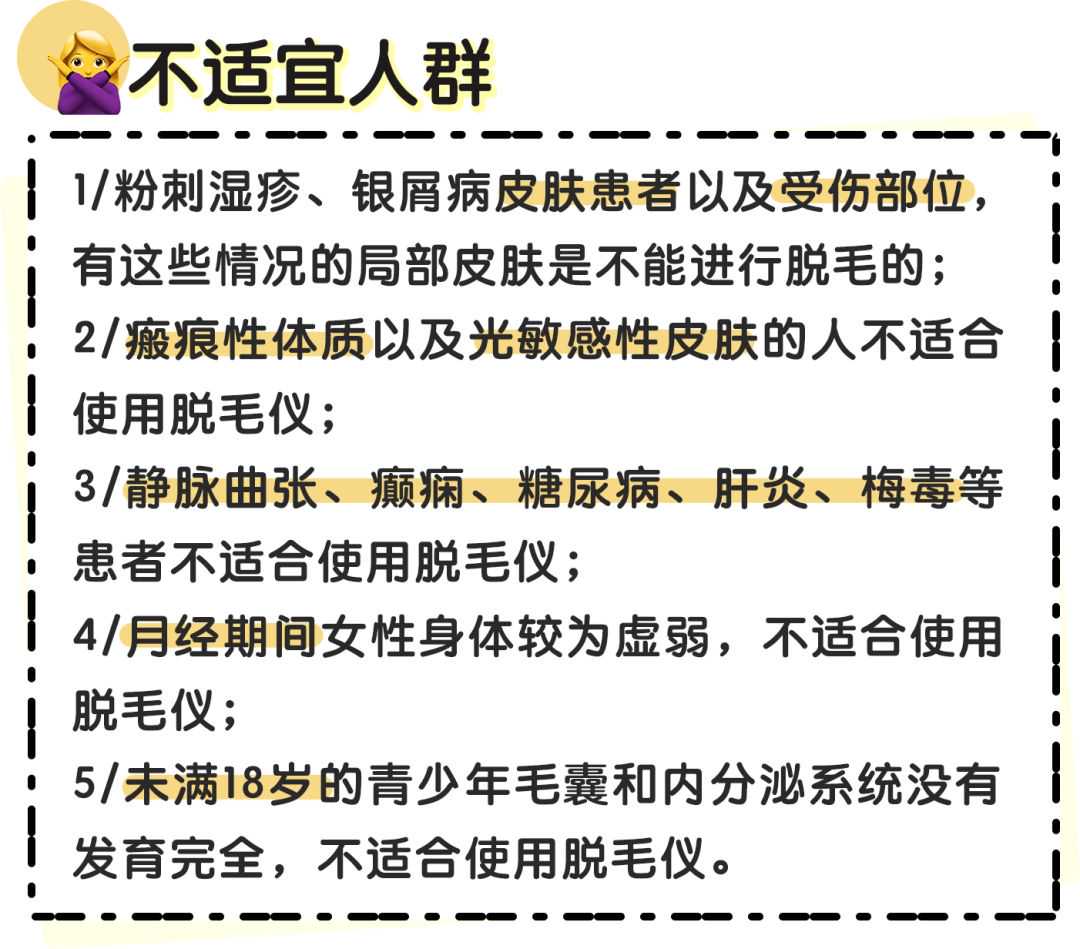 当然脱毛仪也不是百无禁忌,下面这些人我不推荐使用脱毛仪哦