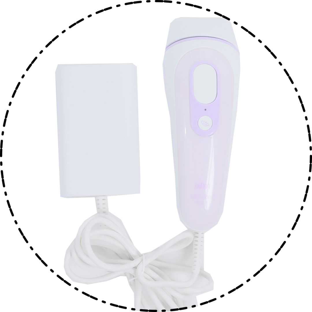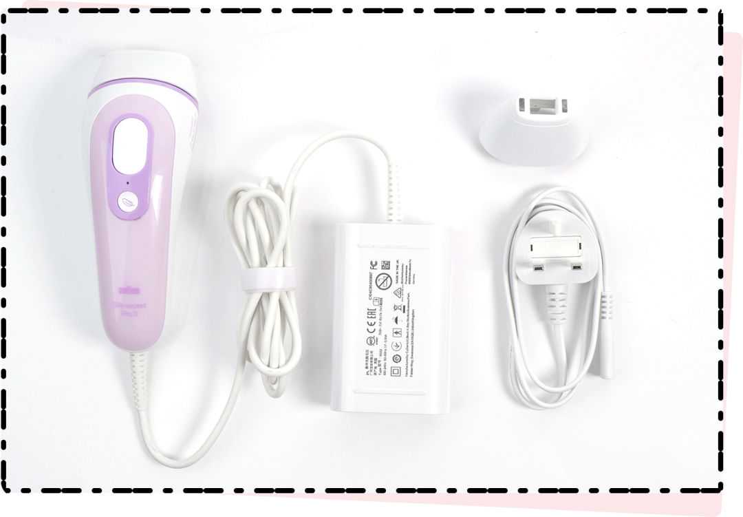 博朗这款脱毛仪的颜色看上去很清爽。照射灯头分为大面积照射灯头和局部敏感位专用小灯头,机身上有一条连接电源的线是无法拆卸的,更适合在家使用