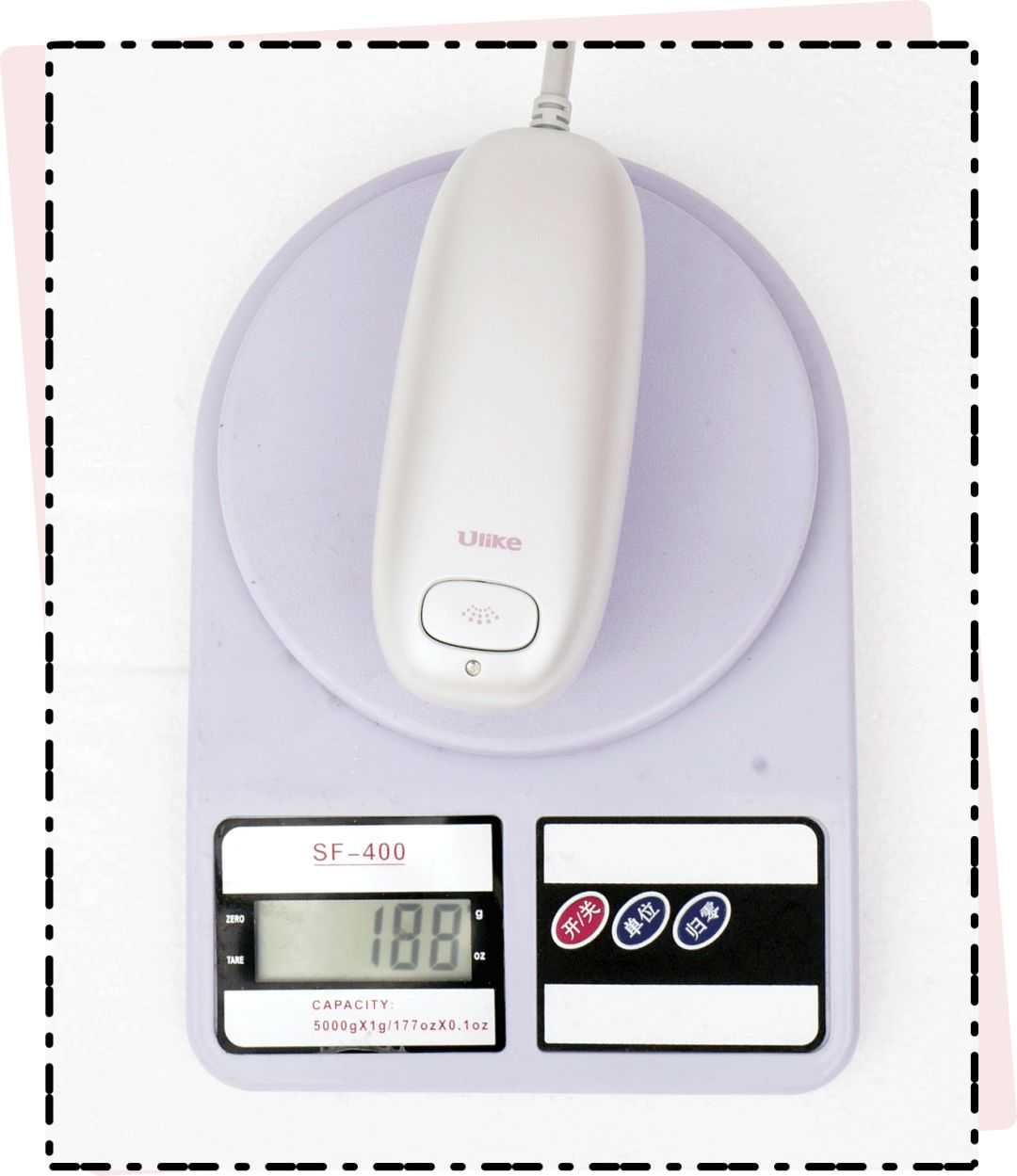 机身有一嗲重,但是前来测评的同事A说这个脱毛仪拿起来的质感让她觉得很踏实,顺便还能锻炼臂力,我觉得也挺有道理的