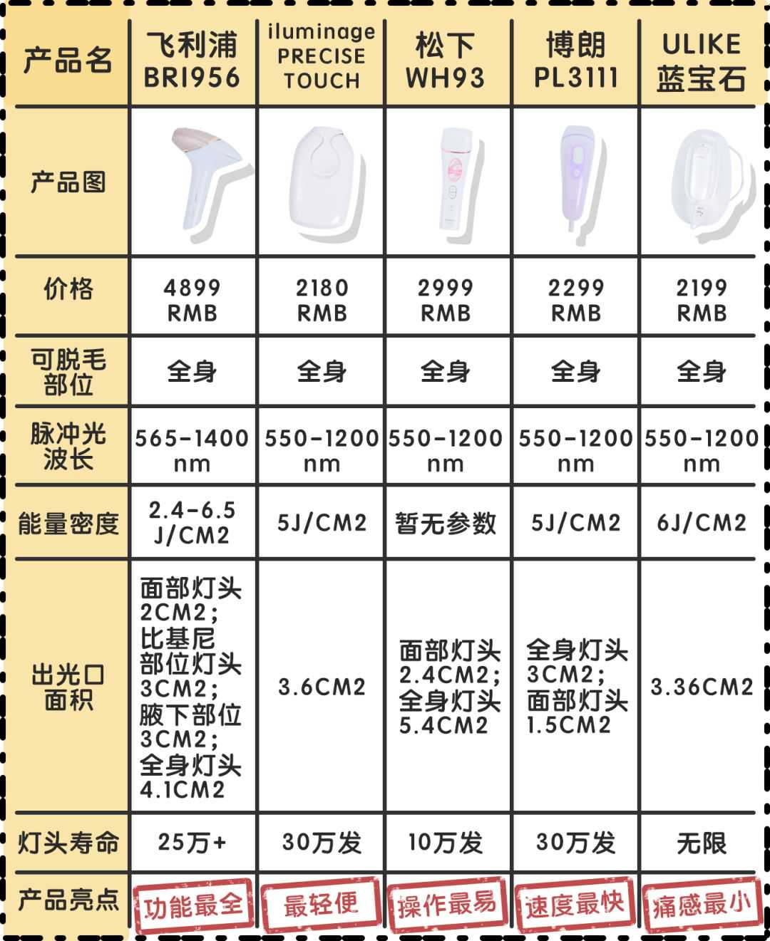 贴心的我,还用表格形式为你们整理了这五台脱毛仪的不同之处⬇️