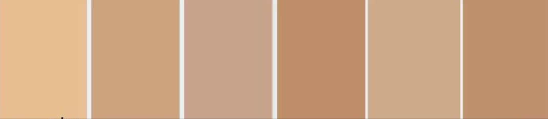 色相/色调:棕褐色系的色相范围是从红色的红棕到略显黄色的棕色和米色组成。