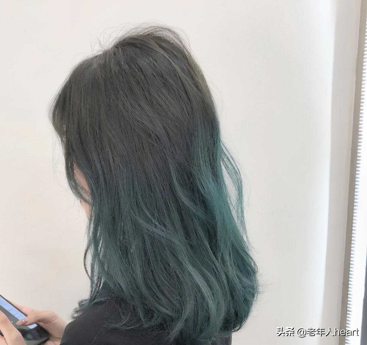 蓝绿色这款发色在室内相对比较暗一些,在阳光下颜色比较浅。