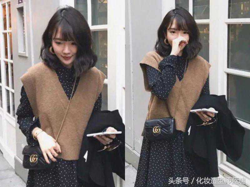 齐嘴短发搭配梨花卷很有复古感和俏皮感,对发量少的妹子也非常友好。