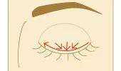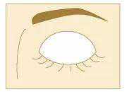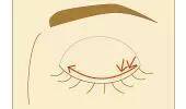 一般,谁都有咖啡或灰色的眼影吧。用细长的笔沾点水把这个眼影化为液体状,在水中溶化的眼影可以作为液体眼线笔来使用。这个方法,适合任何一种眼睛。特别是很难画眼线的单眼皮者值得一试。
