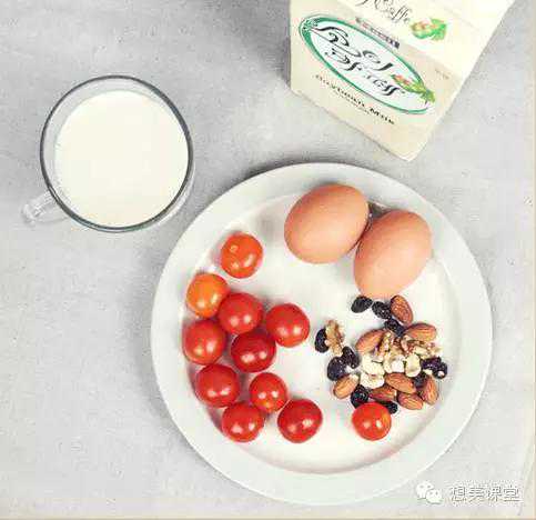 晚餐:2个鸡蛋+圣女果+坚果+豆奶/低脂牛奶