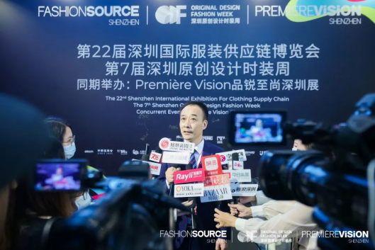 智奥鹏城(深圳)展览有限公司董事总经理、深圳市服装供应链协会执行会长张祥全先生介绍了FashionSource深圳国际服装供应链博览会和深圳原创设计时装周办展以来的辉煌成绩,他说:“我们在深圳相遇,我们因梦想相聚,FashionSource作为时尚供应链的国际引领者,深耕服装行业二十年,以强大的资源整合能力,前瞻性的行业思维,在细微处提高品质,让FashionSource成长为粤港澳大湾区首屈一指的服装纺织B2B商贸平台,雄关漫道真如铁,而今迈步从头越,我们用二十年站在了一个全新的起点,下一个二十年,我们将以供应链制造为基础,以原创设计和趋势引领为双翼,将FashionSource打造成最具价值的全球时尚服装产业的引领者”。