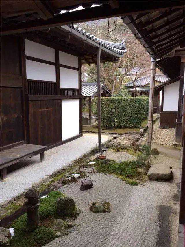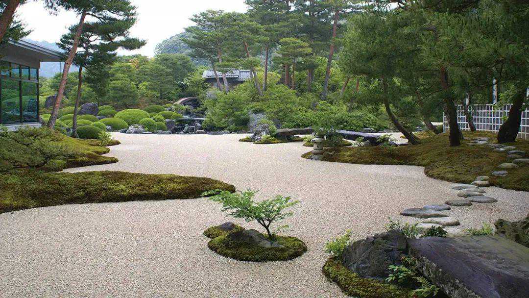 “禅庭”是极为简单的。尤其是仅仅依靠砾石和白砂,最多再加入少量的苔藓来表现大自然的“枯山水”,这即是“简素”最极致的体现。它的样子即是禅之美的象征。