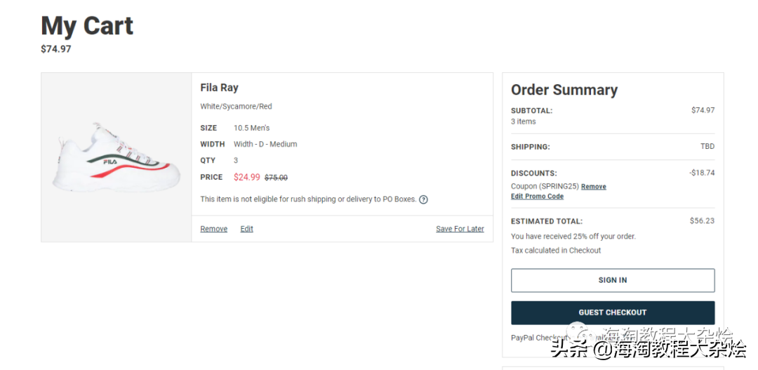 Eastbay现有FILA斐乐RayTracer男款运动鞋,原价$75,现特价$18.74(约132元),满$49享额外7.5折,需要使用优惠码:SPRING25,优惠随时可能失效,现加入FLX会员即可享受美国境内任意订单免邮,非FLX会员订单满$50可享美国境内免邮。