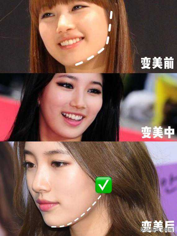 肤色ok了,下一步是轮廓(脸型),然后再考虑可以锦上添花的。轮廓是五官的框架,可以说面部里面轮廓是基础,所谓你能整成什么样,都取决于你的硬件基础,下面举几个韩星的例子: