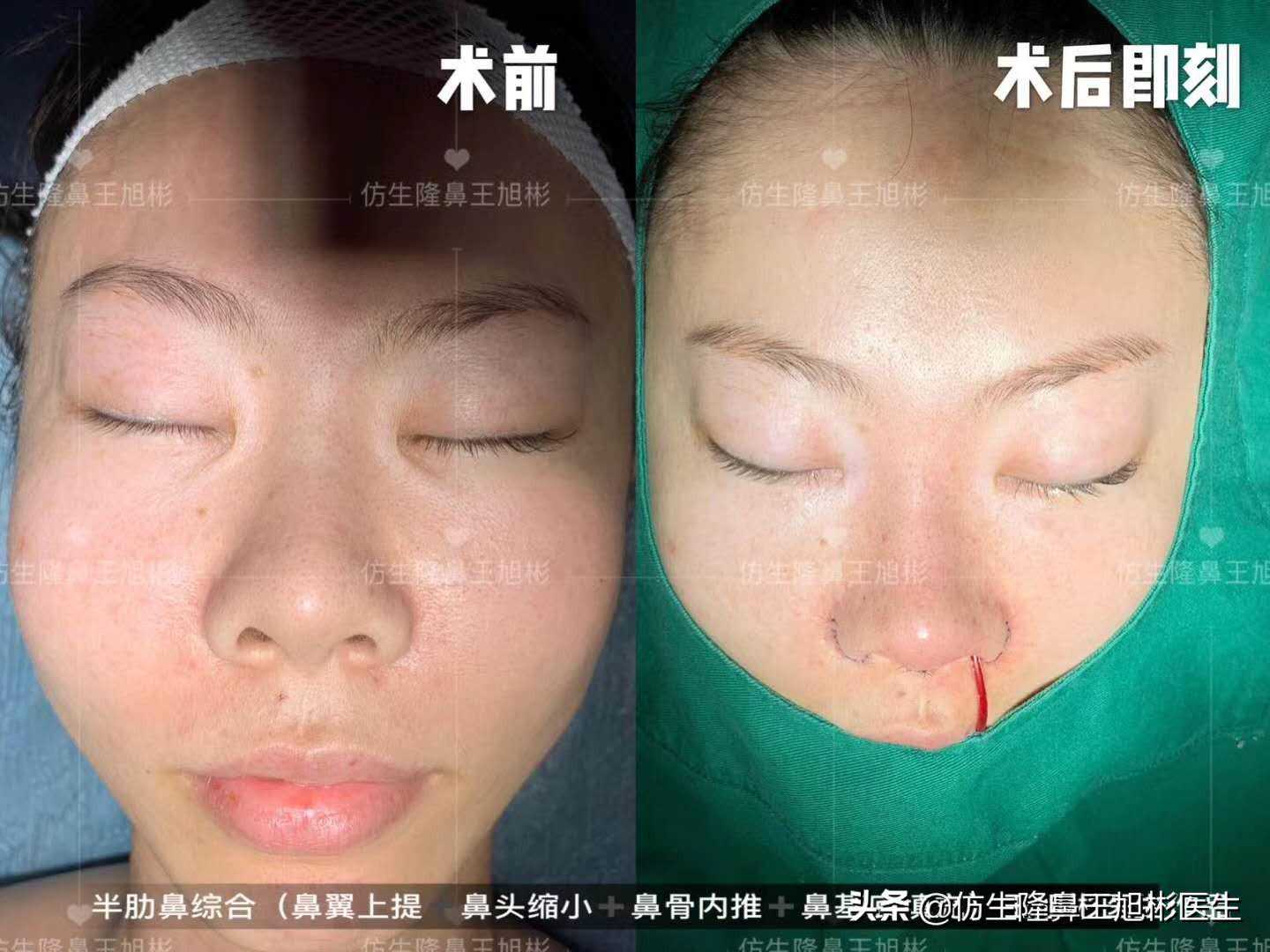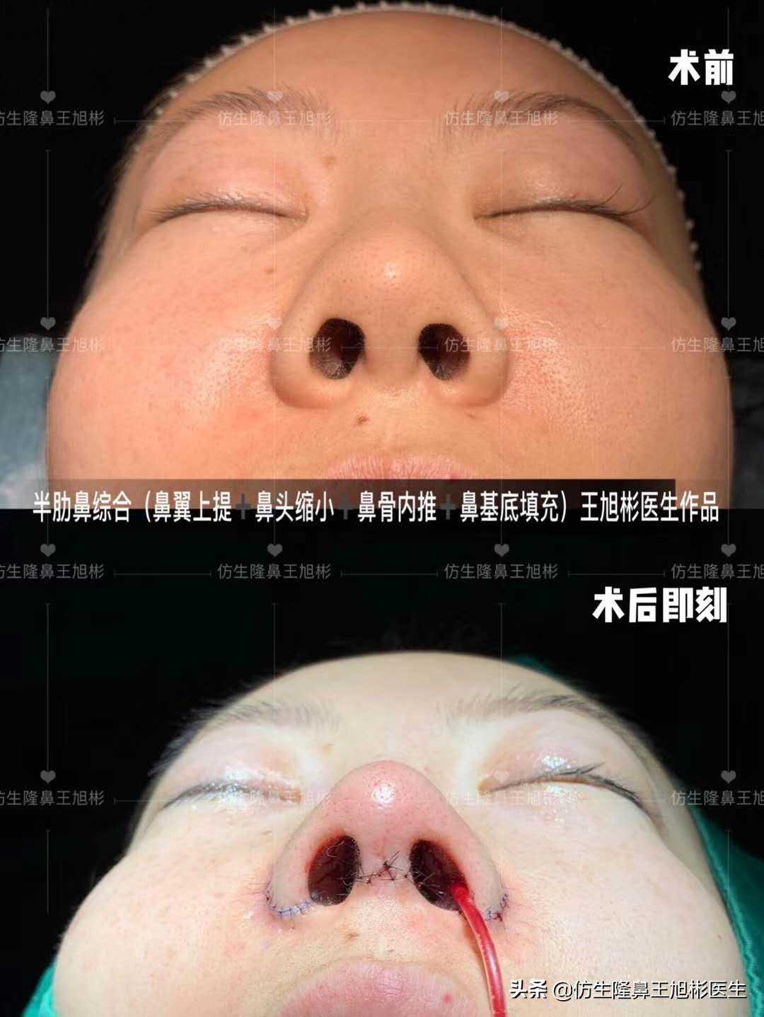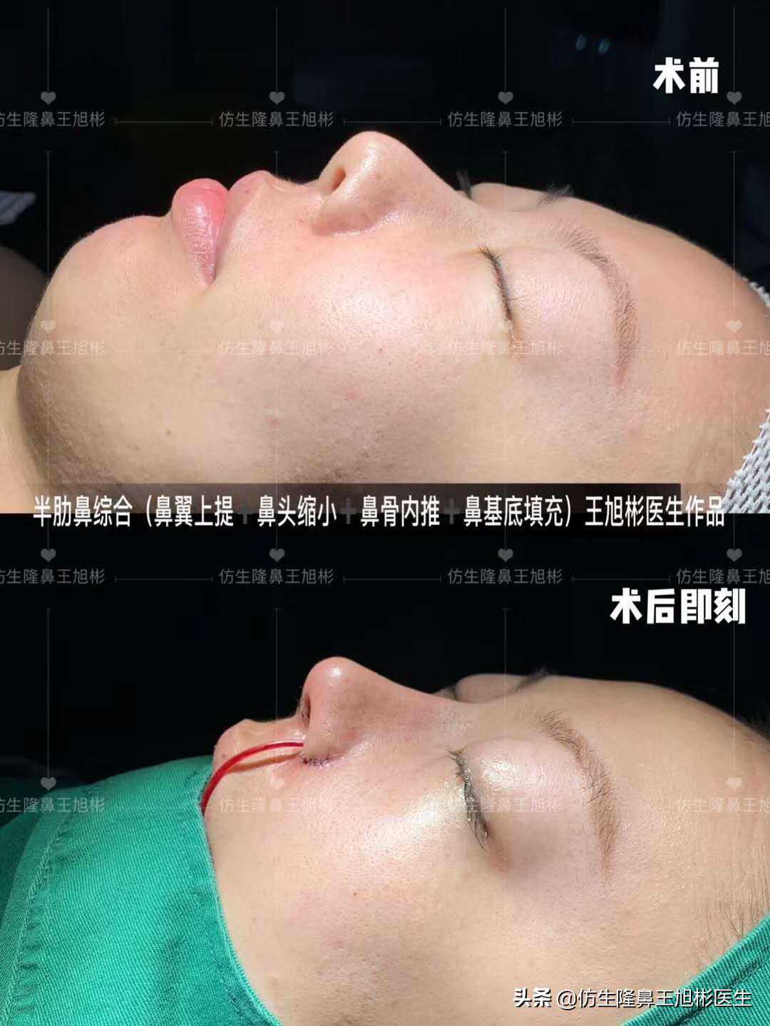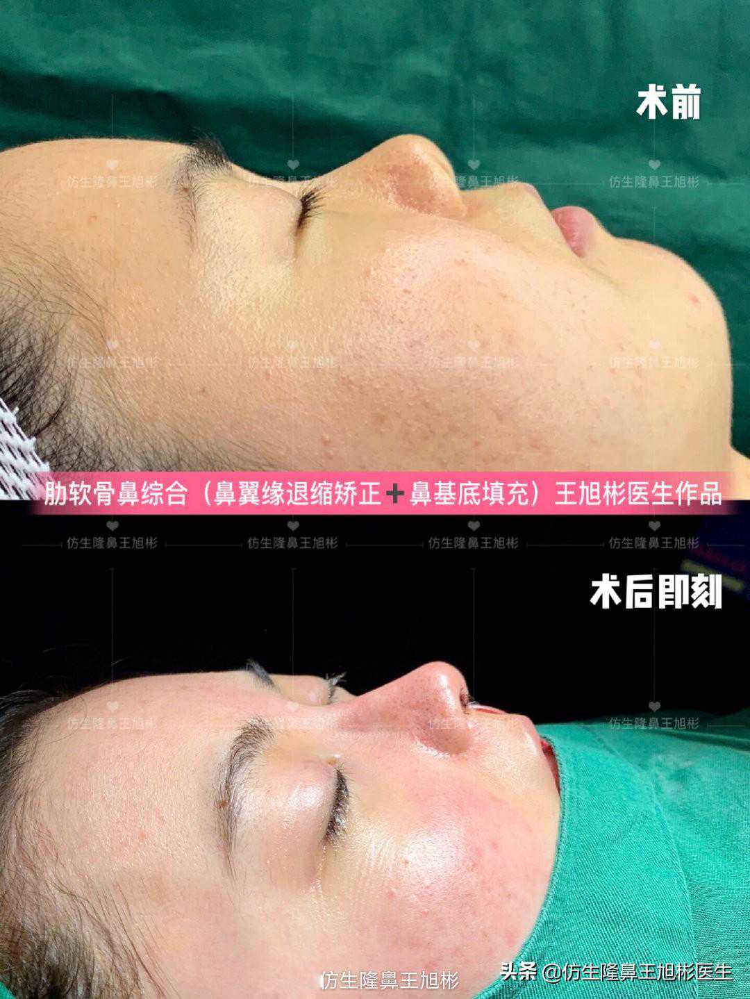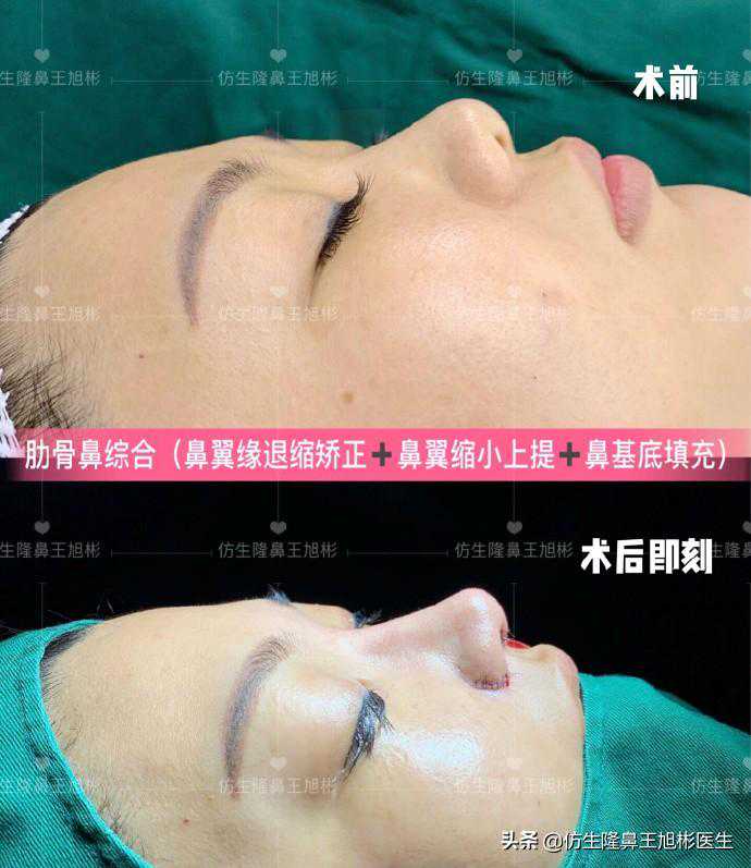 圆圆肋骨鼻综合(鼻翼缘退缩矫正+鼻基底填充)术后即刻对比。