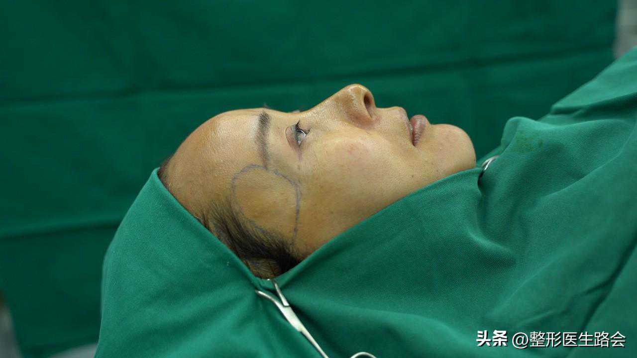 3.手术方案确定后,根据太阳穴凹陷程度,画线确定术区。