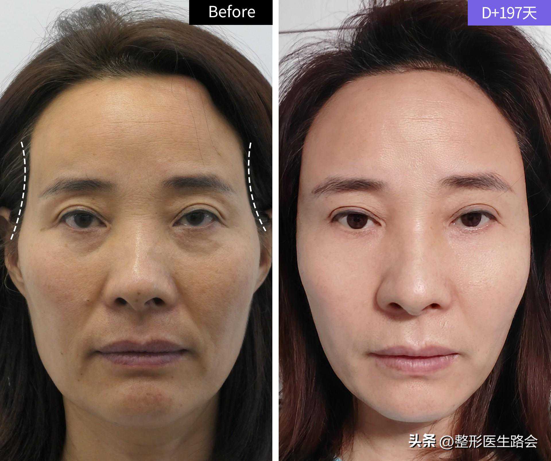 14.做完膨体太阳穴填充,2个月后她又做了膨体泪沟,这张图是膨体泪沟即刻效果,切口缝线一清二楚。
